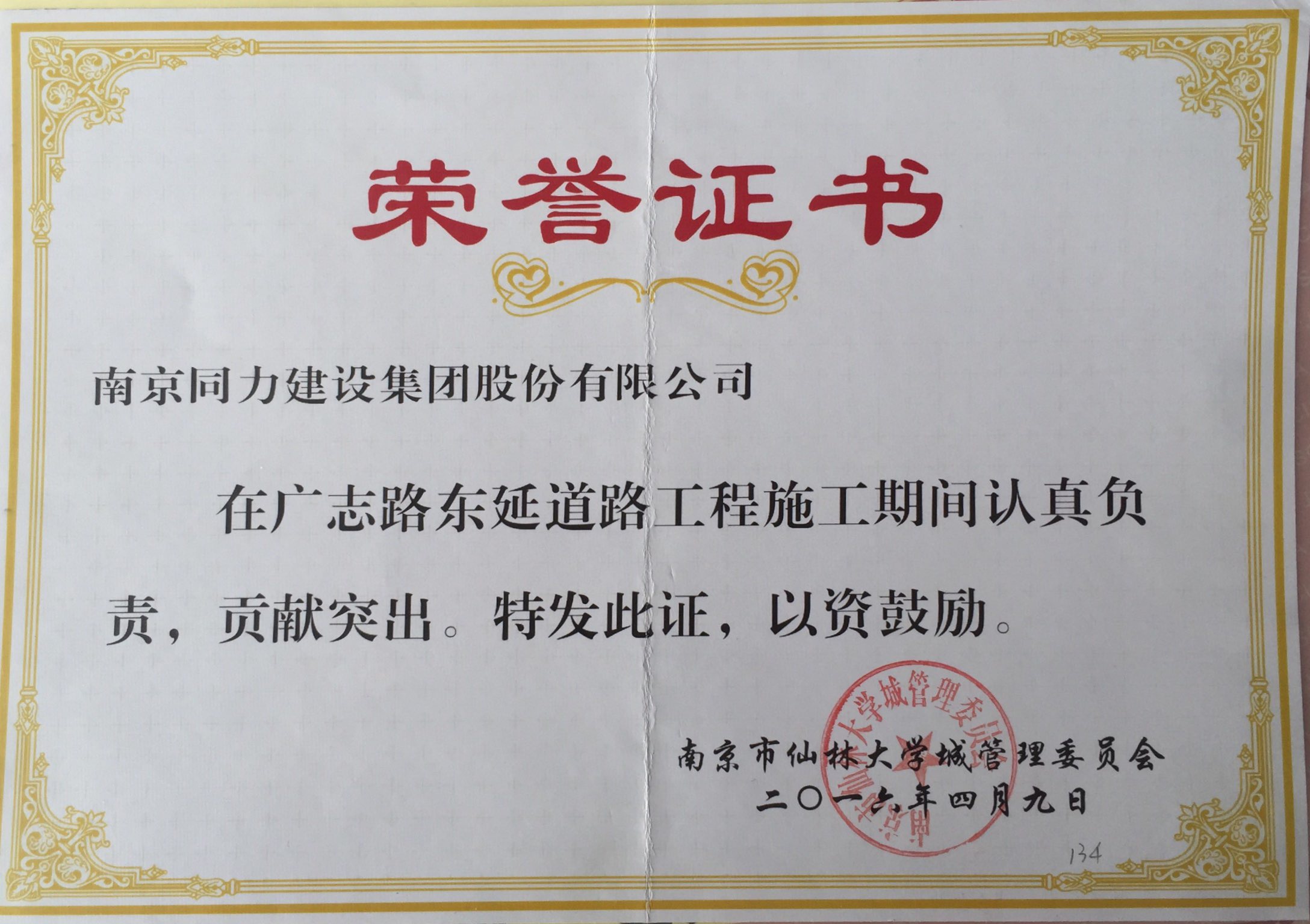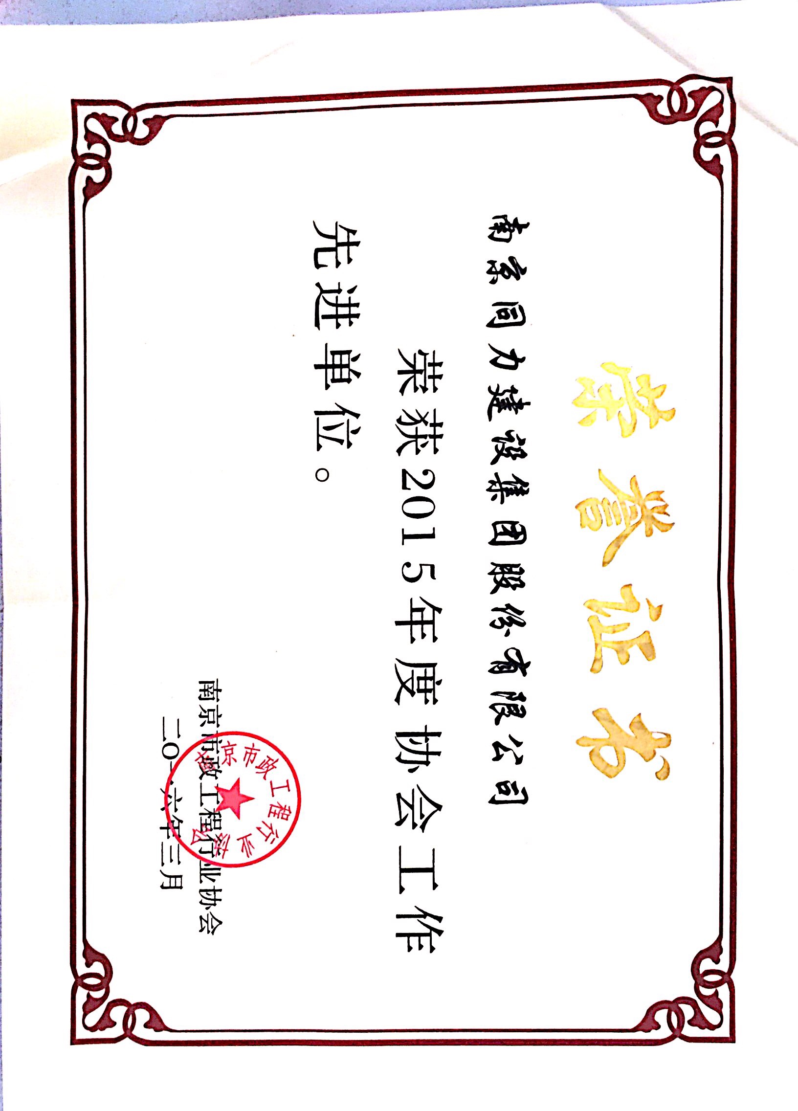 公司被評(píng)為“2015年度南京市城市建設(shè)立...