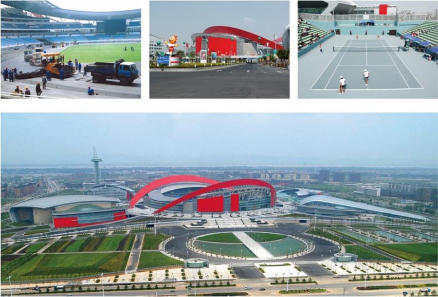 南京奧體中心工程是國家十運(yùn)會(huì)主場館,也是江蘇省重點(diǎn)工程,工期、質(zhì)量容不得一點(diǎn)馬虎。工程包括室內(nèi)室外場地及攤鋪任務(wù),以及主體育場、訓(xùn)練場、十二片網(wǎng)球場的結(jié)構(gòu)層施工任務(wù)。奧體中心室外瀝青砼、網(wǎng)球場瀝清砼等工程量小但要求極其嚴(yán)格,眾多瀝青砼生產(chǎn)公司受困于設(shè)備和技術(shù),知難而退。