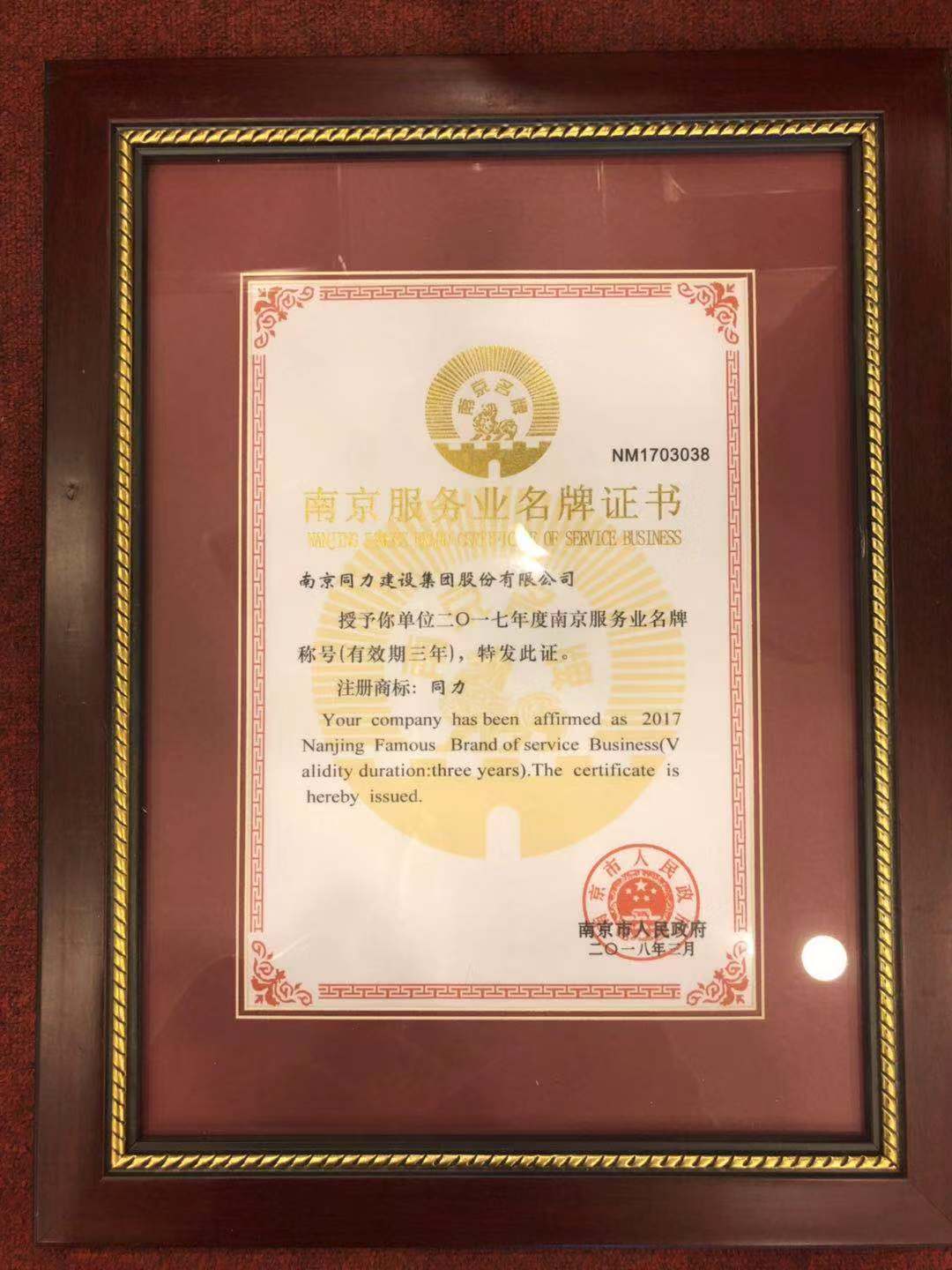 近日,同力建設(shè)被南京市名牌戰(zhàn)略推進委員會授予 “南京服務(wù)業(yè)名牌”證書,同力建設(shè)再添一張新名片。