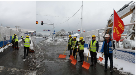 龍蟠中路項目部第一時間啟動掃雪應急預案,要求全體管理人員停止休假返崗,積極組織并參與掃雪除冰、保障群眾安全暢通出行工作。