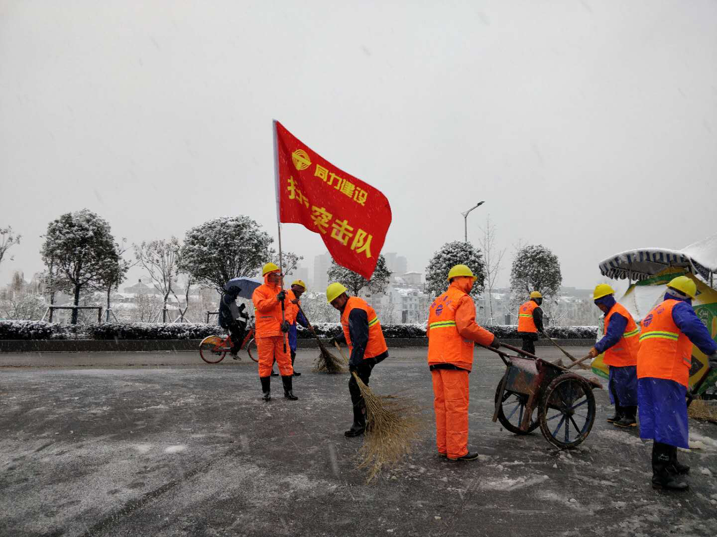 在紅山路項目部,8日凌晨4點起至9日,每天出動輪挖車1輛,雪鏟6把,鐵鍬2把,掃把5把,融雪劑約45袋加入鏟雪掃雪隊伍,組成10人的掃雪突擊隊,對紅山街道沿紅山路片區(qū)道路主次干道、公交站臺、小區(qū)出入口等重點部位進行掃雪清理,確保轄區(qū)內(nèi)道路通暢。