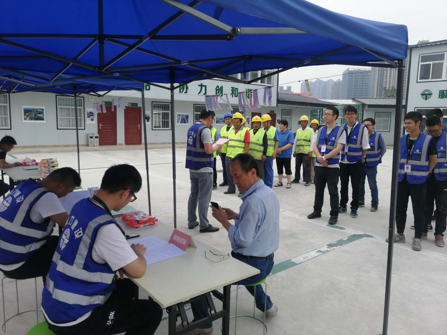 ★施工人員排隊參與現場宣傳活動