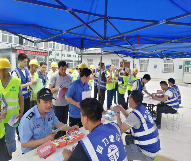 南京同力建設集團股份有限公司南京地鐵5號線土建施工TA07-2標項目部舉辦以 “防風險、除隱患、遏事故”為主題的2019年“安全生產月”宣傳咨詢日活動,在全項目部唱響“安全生產”的主旋律,牢固樹立“安全第一、預防為主、綜合治理”的安全生產方針。