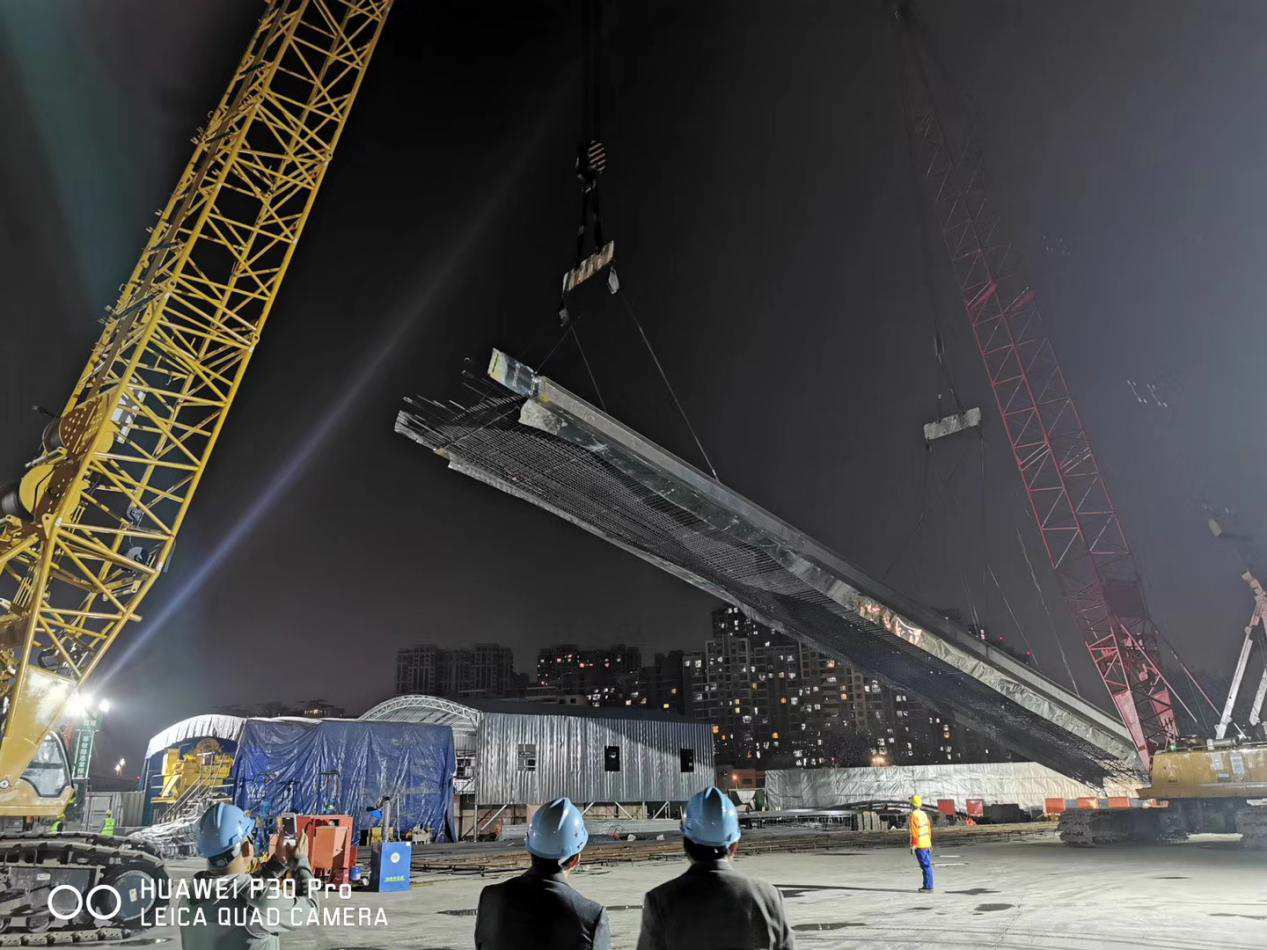 4月22日夜,身披月光,沐浴江風,在南京長江大橋的見證下,45.86米鋼筋籠緩緩升起,完美入槽,標志著同力建設在富水粉細砂層地下空間中打開了新的篇章。