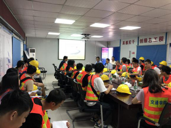 9月7日上午,南京工業(yè)大學(xué)交通學(xué)院一行80余學(xué)生在校方老師的帶領(lǐng)下,來(lái)到了工程一分公司施工的紅山路隧道項(xiàng)目經(jīng)理部進(jìn)行參觀學(xué)習(xí)。在項(xiàng)目部門(mén)口,經(jīng)過(guò)簡(jiǎn)要介紹后,一行人分為兩組,一組在項(xiàng)目經(jīng)理丁健的帶領(lǐng)下參觀施工現(xiàn)場(chǎng),另一組由公司市場(chǎng)部經(jīng)理徐雋組織在項(xiàng)目部會(huì)議室聽(tīng)取紅山路項(xiàng)目施工工藝介紹及大校場(chǎng)隧道技術(shù)工藝總結(jié),之后兩組人員輪換,讓每個(gè)學(xué)生都可以從理論到現(xiàn)場(chǎng)對(duì)整個(gè)隧道施工有一定的了解。