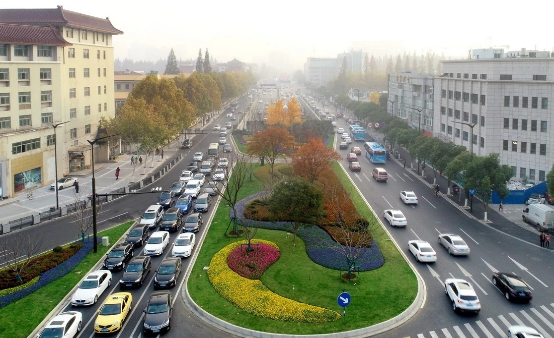 對中、側(cè)分帶綠化進(jìn)行彩化,提升道路整體景觀,增設(shè)街頭綠化和休憩設(shè)施,提升城市品質(zhì)和人文關(guān)懷。