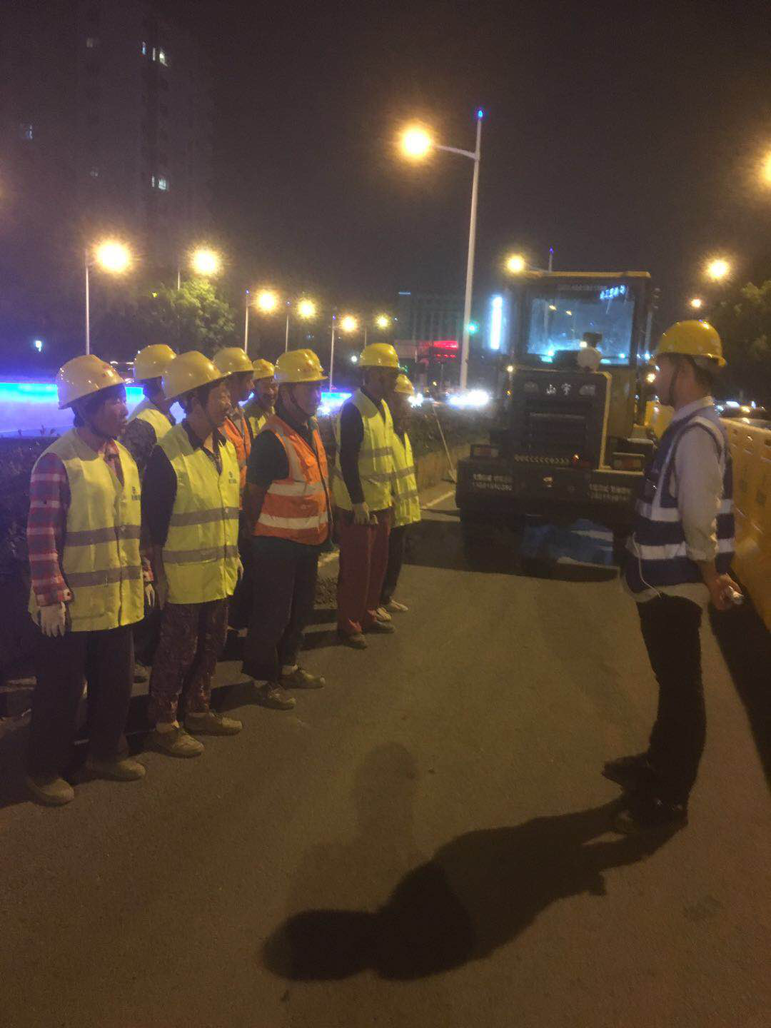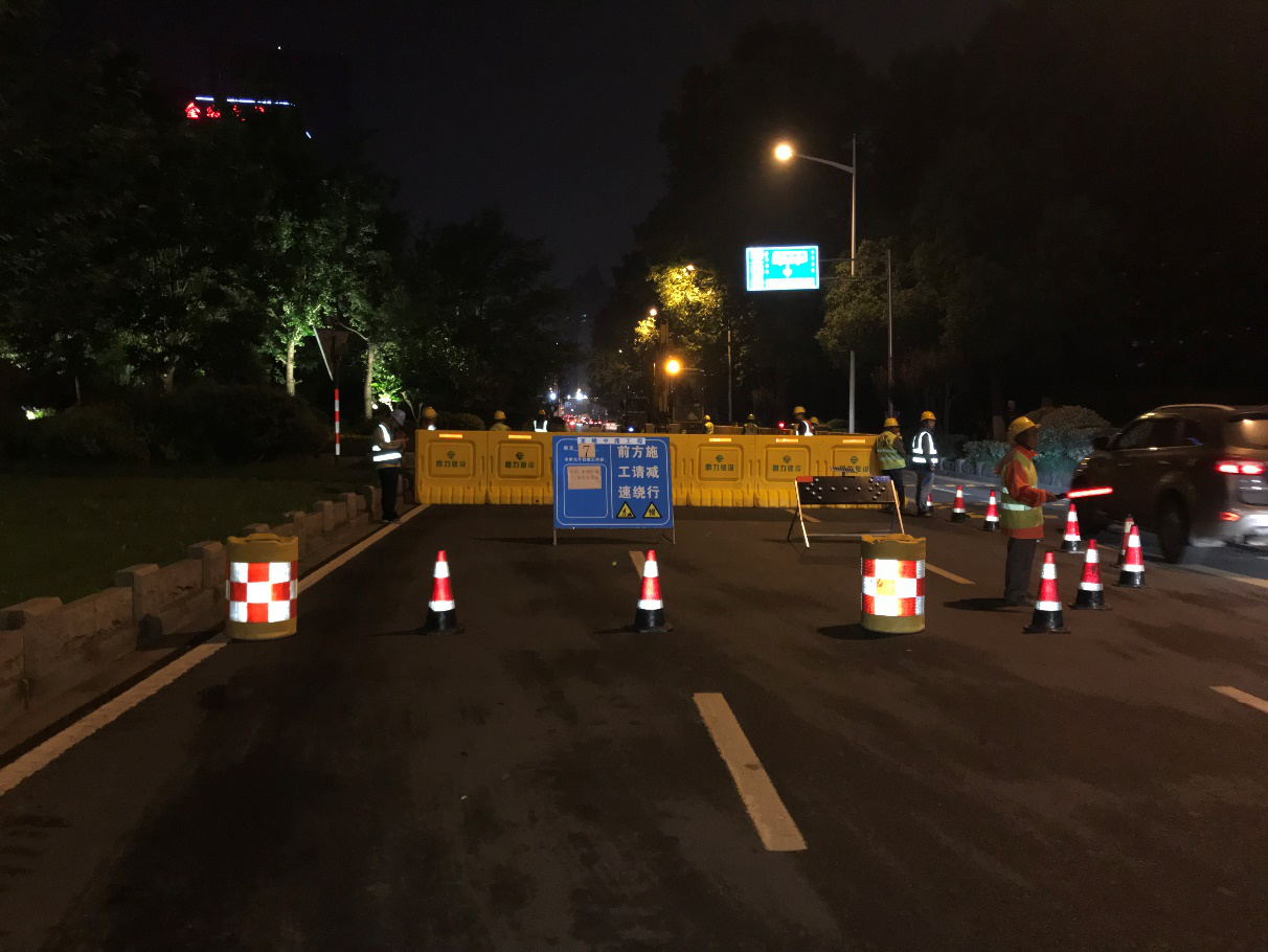 開工后外部條件復(fù)雜,名城會、中高考護(hù)考、梅雨等都大大影響了工期。開保工至今幾乎有2\3的時間無法正常施工。針對護(hù)考、重要活動保供節(jié)點等特殊時段,正一方面多方協(xié)調(diào),盡可能爭取相對寬松的外部條件;一方面果斷調(diào)整工序,在禁運(yùn)禁噪前夕組織加大力量集中實施產(chǎn)生道大量渣土和噪音的側(cè)平石拆除作業(yè),并用圍擋密圍占住原側(cè)平石區(qū)域防止土方流失。確保了在護(hù)考時期可以只施工路緣石鋪貼等不產(chǎn)生噪音的工序。同時為了切實在護(hù)考期間將噪音降至最低,經(jīng)過調(diào)研,項目部給各作業(yè)班組更換采用太陽能充電鋰電池LED燈等新型照明設(shè)備。這類新設(shè)備價格不貴,又不用燃油發(fā)動機(jī)提供電能,不僅解決了燃油發(fā)動機(jī)的噪音問題,同時移動便利也方便了施工。
